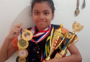 2nd Milestone - 21 June 2025: Trophy and Merit Certificate for securing 4th Rank in U-10 Girls Category in Open and Age Category Chess Tournament organized by CHESSFUSION, Bengaluru, India.