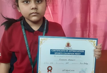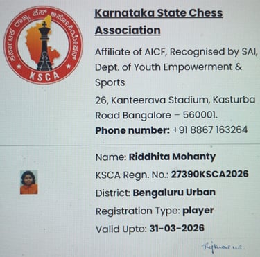 6th Milestone -30 November 2025: Trophy and Merit Certificate for securing 3rd Rank in U-12 Girls Age Category Rapid Chess Tournament organized by BUDCA @ Bengaluru, India.