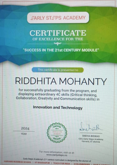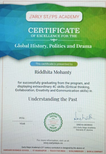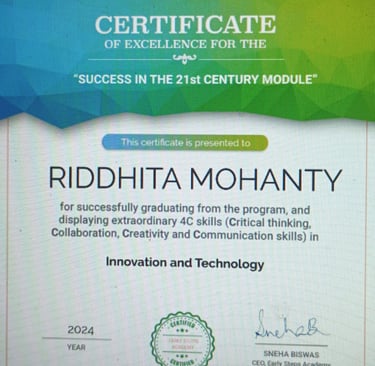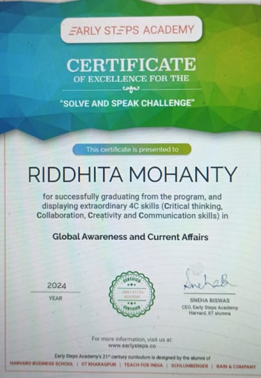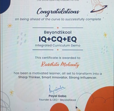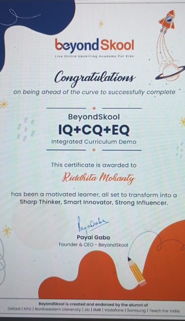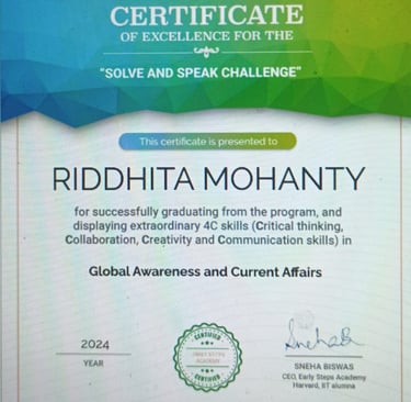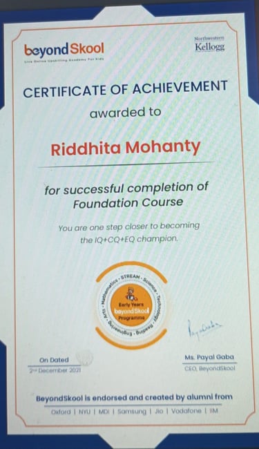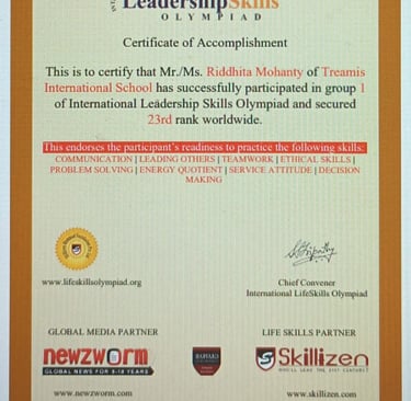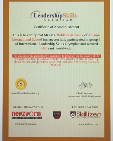 World Rank Holder in Annual International Olympiads organized by Skillizen Foundation, Singapore, among 10,000+ participants from 70+ countries.