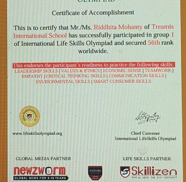 International Life Skills Olympiad (ILSO) - Rank 56 [2024-25]