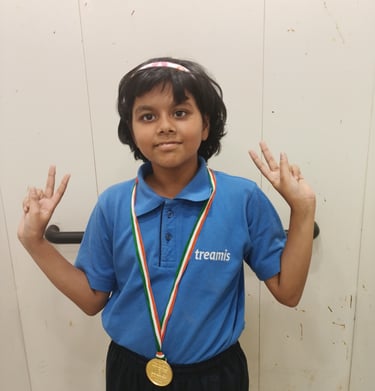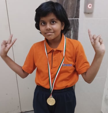 3rd Milestone: 06 July 2025: Medal and Merit Certificate for securing 8th Rank in U-10 Girls Category in Open and Age Category Chess Tournament organized by KALADARPANA CHESSARTZ, Bengaluru, India.